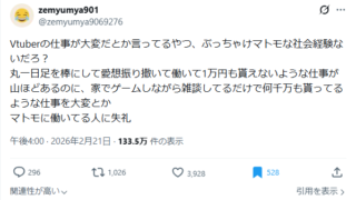 「VTuberの仕事が大変?マトモな社会経験ないだろ」→Xで133万表示の大論争!賛否の声まとめ